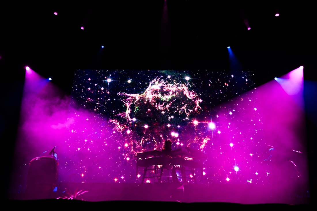 Kitaro ขนบทเพลงไล่เรียงบรรยากาศทั้งความสงบ ลึกล้ำ และความยิ่งใหญ่ เรียกว่าทันทีที่เสียงดนตรีแรกเริ่มบรรเลง บรรยากาศทั้งฮอลล์ก็เปลี่ยนเป็นอีกโลกหนึ่ง โลกที่เต็มไปด้วยความสงบ ความลึกซึ้ง และพลังแห่งธรรมชาติ เปิดโชว์ด้วยพลังเสียงกลอง Taiko และบทเพลงคุ้นหูอย่าง Silk Road Theme ก่อนจะพาเข้าสู่บทเพลงดังมากมาย อาทิ Caravansary, Aqua, Oasis ฉากหลังถูกแต่งแต้มด้วยภาพสายน้ำ ป่าเขียวขจี และท้องฟ้าอันกว้างใหญ่ ราวกับพาผู้ชมทุกคนออกเดินทางไปในมิติแห่งจิตวิญญาณ ไปจนถึง Hajimari, Sozo, Koi, Orochi และ Angel Queen
