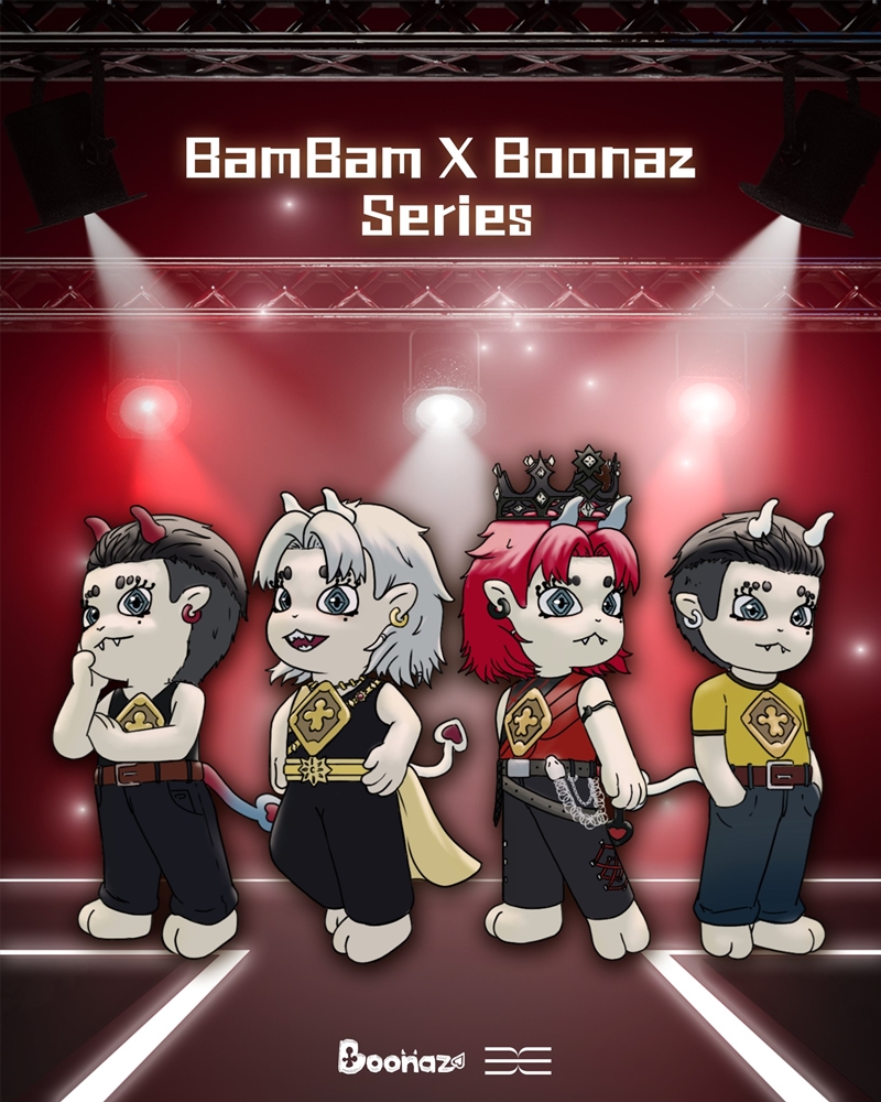 ไฮไลต์ของคอลเลกชันนี้ คือการร่วมงานกับไอค่อนระดับโลก แบมแบม – กันต์พิมุกต์ ภูวกุล” หรือ BamBam GOT7 โดยการนำเสนอพลังความคิดสร้างสรรค์และสไตล์อันมีเอกลักษณ์ของเขา ซึ่งสอดคล้องกับจิตวิญญาณของ Boonaz อย่างสมบูรณ์แบบ แบมแบมไม่ได้เป็นเพียงศิลปิน แต่คือตัวแทนของด้านแห่งแสงสว่างผู้ที่กล้าเปล่งประกายและซื่อสัตย์ต่อตัวเอง ซึ่งสะท้อนคอนเซ็ปต์ The Courage to Express Yourself ได้อย่างชัดเจนที่สุด โดยแบมแบมยังมีส่วนร่วมในกระบวนการสร้างสรรค์อย่างใกล้ชิด ตั้งแต่การหารือเกี่ยวกับภาพลักษณ์หลัก (Key Visuals) ไปจนถึงการเสนอแนวคิดเพื่อเพิ่มพลังและเสน่ห์บนเวทีให้กับคาแรกเตอร์ Boonaz ทำให้มอนสเตอร์น้อยตัวนี้ดูมีชีวิตชีวาและเป็นสัญลักษณ์ของพลังบวกอย่างแท้จริง โดยในโปรเจกต์นี้ แบมแบมได้มีส่วนร่วมในกระบวนการครีเอทีฟ ตั้งแต่การร่วมออกแบบ Key Visual การเลือกโทนสีของคาแรกเตอร์ ไปจนถึงแนวคิดของแคมเปญ เพื่อให้ Boonaz ถ่ายทอดพลังและความมีชีวิตชีวาในแบบ on-stage energy