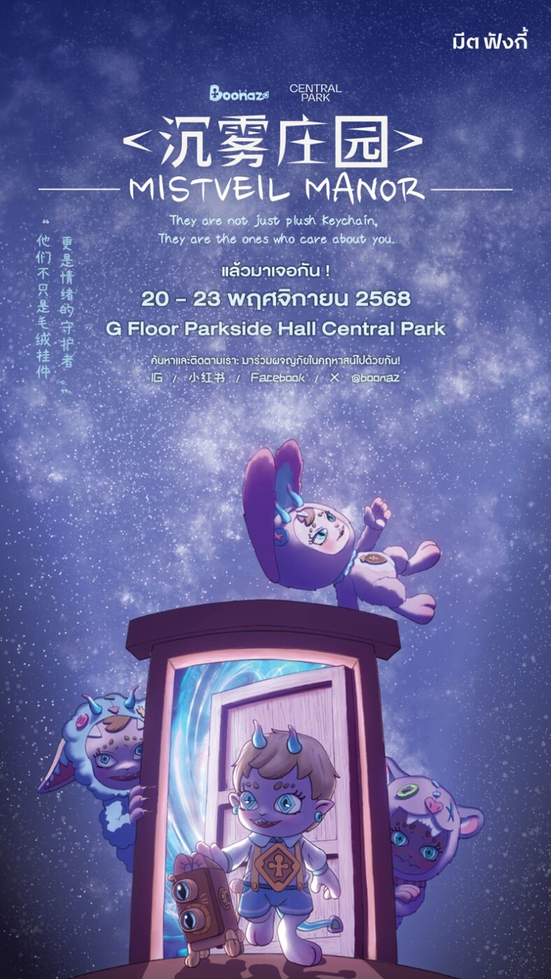 สาวกอาร์ตทอยได้กรี๊ดสนั่น เมื่อ Boonaz (บูนาซ) แบรนด์คาแรกเตอร์ชื่อดัง มากุมหัวใจชาวไทยด้วยคาแรกเตอร์มอนสเตอร์ตัวน้อยแสนลึกลับ เปิดคอลเลกชันใหม่ Mistveil Manor Plush Series ที่ได้ศิลปินระดับโลกและไอคอนอย่าง แบมแบม กันต์พิมุกต์ ภูวกุล (BamBam GOT7) มาร่วมถ่ายทอดแนวคิด The Courage to Express Yourself (ความกล้าที่จะเป็นตัวเอง) พร้อมเปิดประสบการณ์สุดพิเศษครั้งแรกในประเทศไทย กับ Limited Pop-Up Store ใจกลางกรุงเทพฯ จัดเต็มทั้งกิจกรรมสุดสนุกและสินค้าสุดเอ็กซ์คลูซีฟ ณ พาร์คไซด์ ฮอลล์ ชั้น G, เซ็นทรัล พาร์ค ระหว่างวันที่ 20 – 23 พฤศจิกายน 2568 เท่านั้น