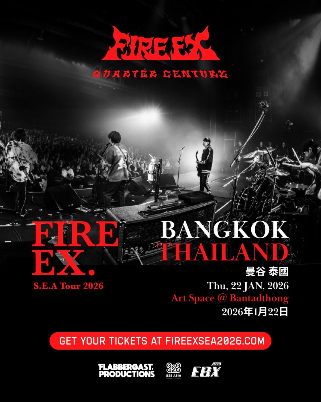 หลังจากสร้างความประทับใจในการแสดงที่สิงคโปร์ในปี 2025 Fire EX. กลับมาอีกครั้งกับทัวร์ครบรอบ 25 ปี เพื่อจุดประกายความมันอีกครั้งในวันพฤหัสบดีที่ 22 มกราคม 2026 ณ Artspace@Bantadthong แฟนเพลงเตรียมสัมผัสคํ่าคืนที่อัดแน่น ด้วยพลังดิบ เสียงร้องร่วมสุดมัน และจิตวิญญาณแห่งการปลดปล่อยและการต่อต้านในแบบ Fire EX. การแสดงครั้งนี้จะเป็น คํ่าคืนที่ยากจะลืมเลือน เพื่อเฉลิมฉลอง 25 ปี แห่งเส้นทางดนตรี และจิตวิญญาณแห่งพังก์เอเชียที่ยังคงลุกโชน