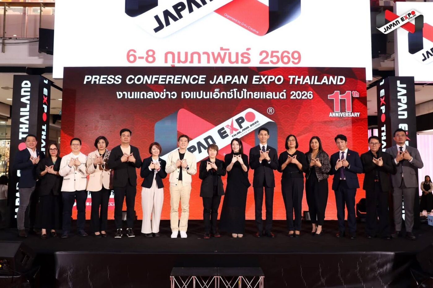 โดยเมื่อวันพฤหัสบดีที่ 15 มกราคม 2569 บริษัท จี–ยู ครีเอทีฟ จำกัด ได้จัดงานแถลงข่าวฉลองครบรอบ 11 ปี JAPAN EXPO THAILAND 2026ซึ่งได้รับความร่วมมืออย่างดียิ่งจากพันธมิตรเชิงกลยุทธ์ทั้งภาครัฐและเอกชน พร้อมด้วยแขกผู้มีเกียรติระดับชั้นนำที่มาร่วมงานกันอย่างพร้อมเพรียง อาทิ นายอากาซากะ ฮิโรกิ ผู้อำนวยการสำนักข่าวสารญี่ปุ่น สถานเอกอัครราชทูตญี่ปุ่นประจำประเทศไทย, คุณโชตะ ยามาโมโตะ ผู้อำนวยการองค์การส่งเสริมการค้าต่างประเทศของญี่ปุ่นกรุงเทพฯ, คุณอาซาโกะ คุมาชิโระ ผู้อำนวยการ องค์การส่งเสริมการท่องเที่ยวแห่งประเทศญี่ปุ่น สำนักงานกรุงเทพฯ, คุณรุ่งรัตน์ พุทธพงษ์ ผู้อำนวยการสำนักงานวัฒนธรรมและการท่องเที่ยว, ดร.ณัฐกิตติ์ ตั้งพูลสินธนา กรรมการผู้จัดการใหญ่ สายงานการตลาด บมจ.เซ็นทรัลพัฒนา, คุณฐิตพล กาญจนะ ผู้จัดการฝ่ายกิจกรรมส่งเสริมการขาย บริษัท โออิชิเทรดดิ้งจำกัด, คุณสรรวรส พุทธเจริญลาภ ผู้จัดการทั่วไป บริษัท ตรีเพชรอีซูซุเซลส์ จำกัด, คุณธรรมนูญ กู้ประเสริฐ รักษาการ ผู้อำนวยการฝ่ายขาย บริษัท การบินไทย จำกัด (มหาชน), นายปิ่นยศ พิบูลสงคราม รองประธานเจ้าหน้าที่บริหาร ฝ่ายการพาณิชย์และลูกค้าสัมพันธ์ เวียตเจ็ทไทยแลนด์, คุณอลิสรา ศิวยาธร ผู้บริหารโรงแรมศิวาเทล กรุงเทพ, คุณปฏิภาณ วงษ์ชารี ผู้จัดการทั่วไป Mainichi Academic Group ศูนย์แนะแนวศึกษาต่อประเทศญี่ปุ่นครบวงจร, คุณสุวิตา จรัญวงศ์ ประธานกรรมการบริหารและผู้ร่วมก่อตั้ง บริษัท เทลสกอร์ จำกัด, คุณศะศิรา ตันติวรกุลชัย กรรมการผู้จัดการบริษัท เอ็ม.เยส. ฮานาโซโน (ประเทศไทย) จำกัด นอกจากนี้ก็ยังมีตัวแทนศิลปินและไอดอลกว่าร้อยชีวิต เข้าร่วมงานแถลงข่าว ณ ลานอีเดน 1 ศูนย์การค้าเซ็นทรัลเวิลด์
