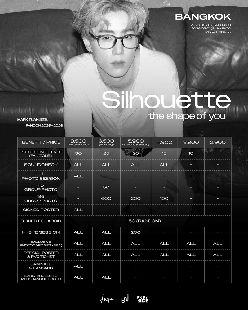 ในปี 2569 นี้ ก็ไม่ต้องรอนานอีกต่อไป เพราะมาร์ค ต้วน กำลังจะกลับมาแบบเต็มอิ่ม จุใจ กับแฟนคอนเสิร์ตเดี่ยว ซึ่งทางต้นสังกัด DNA ได้จับมือกับเอเจนซี่พาร์ทเนอร์ในประเทศไทยอย่าง BNJ Entertainment และอีกหนึ่งผู้จัด FriedRice Entertainment งานนี้อากาเซ่รอคอยช่วงเวลาสร้างความทรงจำสุดพิเศษครั้งใหม่กันได้เลย ในงาน MARK TUAN Silhouette: The Shape of You FANCON 2026 in BANGKOK