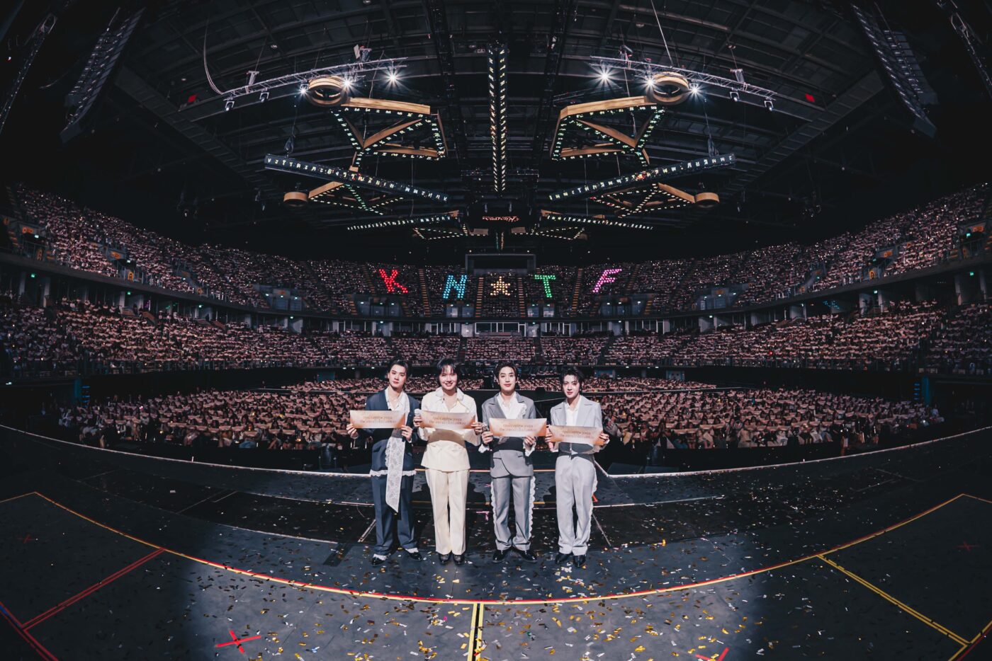 เปิดเวทีด้วยความขลังของเสียงเพลง ‘ผาบมาร’ ที่สะกดให้ทุกคนได้หยุดมองเป็นสายตาเดียวกัน พร้อมกับการปรากฏตัวกลางอากาศด้วยฉากที่สุดจะอลังการของ เก่ง หฤษฎ์ – น้ำปิง นภัสกร – เติ้ล มติมันท์ – เฟิร์สวัน วรรณกร ในเพลง ‘กาลครั้งหนึ่ง’ ที่ชวนให้ต้องมนตร์นับตั้งแต่เปิดเวที พีคต่อด้วยการใช้พลังเสียงในโชว์เพลง Golden และแขกรับเชิญที่เป็นเจ้าของเสียงร้องในเพลง ‘ใจจงมั่น’ อย่าง ‘ปราง ปรางทิพย์’ ได้มาร้องร่วมกับ ‘เก่ง – น้ำปิง’ ในคอนเสิร์ตวันแรก รวมถึงเซอร์ไพรส์สุดพิเศษที่ได้ ‘อิ้งค์ วรันธร’ มาร่วมเป็น Guest ในวันที่ 2 คืนกำไรให้กับแฟน ๆ คุ้มเกินคุ้มที่ได้ฟังเพลง ‘ใจจงมั่น’ ในเวอร์ชัน อิ้งค์วรันธรXเก่งน้ำปิง บนเวทีนี้