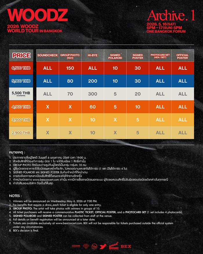 2026 WOODZ WORLD TOUR ‘ Archive. 1 ’ IN BANGKOK ถือเป็นการกลับสู่เวทีระดับโลกอีกครั้งในรอบประมาณ 2 ปี และเต็มไปด้วยกระแสความคาดหวังพุ่งสูง เพราะไม่ว่าซึงยอนจะมาแสดงที่ไทยกี่ครั้ง ก็ไม่เคยทำให้ MOODZ (มู้ดจึ: ชื่อกลุ่มแฟนคลับ) ต้องผิดหวัง เพราะแฟนไทยรู้ดีว่าทุกครั้งที่มาไทย เขาจะใส่ไม่ยั้ง พร้อมความสามารถแบบที่ยากจะหาใครเทียบได้ และทัวร์ครั้งนี้ถือว่ามีความหมายพิเศษยิ่งกว่าเดิม เพราะผู้จัดอย่าง BEX บริษัทอีเวนต์ออกาไนเซอร์ ในเครือเวิร์คพอยท์กรุ๊ป ร่วมกับ YJ PARTNERS และ PROUD2 ตั้งใจให้คอนเสิร์ตครั้งนี้เป็นการเชื่อมต่ออีกครั้งระหว่างซึงยอนและแฟนๆ ทั่วโลก ผ่านโลกดนตรีที่เปิดกว้างยิ่งขึ้น ลึกขึ้น จริงขึ้น และ WOODZ มากขึ้น!