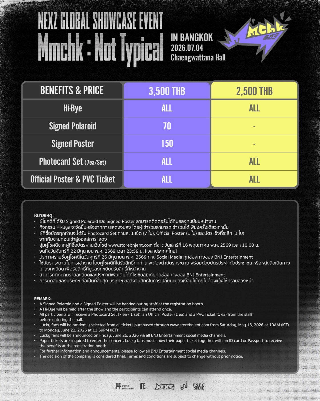 งานนี้แฟนๆ ชาวไทยจะได้สัมผัสเสน่ห์แบบ Not Typical ของทั้ง 7 หนุ่มแบบเป็นกันเอง ล็อกคิวให้พร้อม แล้วมาสร้างโมเมนต์พิเศษไปด้วยกันกับ NEXZ ในโชว์เคสสุดพิเศษครั้งแรกในประเทศไทย